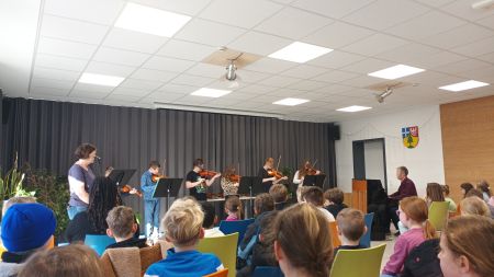 Aktuelles aus der Marienschule__________________________________________________________Polizeipuppenbühne "Mein Körper gehört mir"![]() Am 03. und 04.März war die Polizeipuppenbühne an unserer Schule zu Gast. Den dritten Klassen wurde auf kindgerechte Art und Weise vermittelt, wie wichtig es ist, auf sein inneres Bauchgefühl zu hören und für seine eigenen Gefühle und Empfindungen einzustehen. Im Austausch mit den Polizistinnen konnten die Schülerinnen und Schüler ihre Erfahrungen mitteilen und lernten, wie wichtig es ist, Situationen richtig einzuschätzen und im richtigen Moment "Nein" zu sagen. _____________________________________________"Alle meine Entchen" einmal andersDie dritten und vierten Klassen unserer Schule folgten am 27.02.2026 einer Einladung der Violinen-AG der Realschule Plus, zu einer musikalischen Auszeit.Das altbekannte Lied "Alle meine Entchen" wurde in einer eindrucksvollen Darbietung von Schülerinnen und Schülern der Streicher-AG neu untermalt. In eine Geschichte gebettet, erklang das Lied instrumental auf verschiedene Spielweisen und beeindruckte das Publikum.![]() Im Anschluss daran, durften unsere Schülerinnen und Schüler selbst aktiv werden und die Violinen Probe spielen. Die 5c verköstigte mit selbstgemachten Kuchen und Muffins. _____________________________________________WinterbundesjugendspieleBei unseren jährlichen Winterbundesjugendspielen zeigte sich einmal mehr, wie lohnenswert fleißiges Üben und eine Portion Anstrengungsbereitschaft sind. An Barren, Reck, Kasten und Bock, am Boden und am Schwebebalken absolvierten unsere Schülerinnen und Schüler ihre Turnübungen und sammelten vor unseren Kampfrichtern Punkte. ![]() _____________________________________________Adventsfenster am 16.12.2025In diesem Jahr sollte unser Adventsfenster eine Hommage an die Liebe zu unserer Heimat darstellen: In schwarzen Silhouetten zierten die Kirchen von Hauenstein unsere großen Pausenhoffenster, auf pfälzisch gedichtete Strophen zur Melodie von "Jingle Bells", ließen fröhlich eine Schlittenfahrt "dorch Häschde" und den umliegenden Dörfern, Luuch, Schwanne und Darstä, erklingen und das Gedicht "Die drei Spatzen" von Christian Morgenstern wurde liebevoll auf pfälzisch vorgetragen.